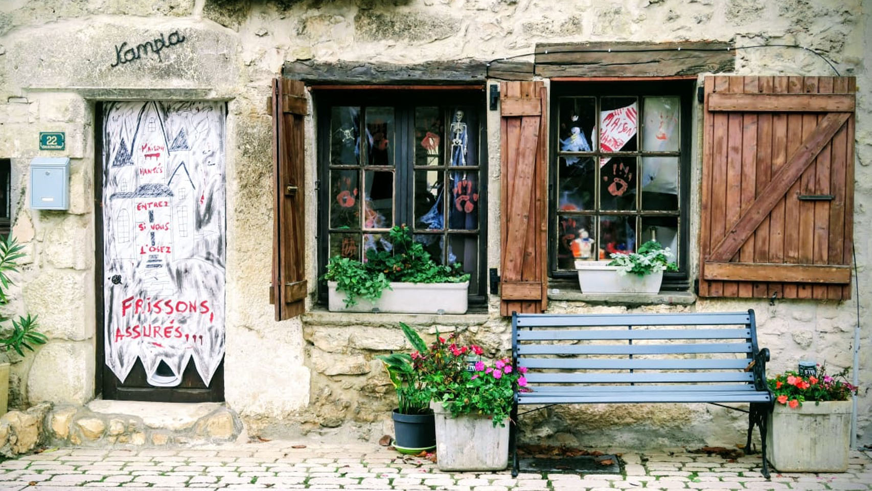 Bravant de nouveau, à travers Cognin-les-Gorges, les messages de terreur et décorations diverses diaboliques d’Halloween, nous retournons au parking de départ.