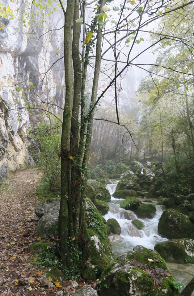 Un classique que les gorges du Nan au départ de Cognin-les-Gorges, 280 m, mais, en ce jour, il avait une connotation particulière, car, grossi par les pluies des jours précédentes, le Nan nous offrit un joli spectacle d’eaux jaillissantes et vrombissantes.